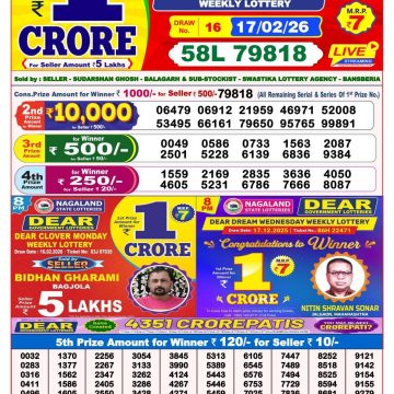 Today's Result is Dear Dream Weekly Lottery Result 8 PM 19/02/26