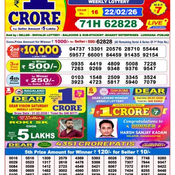 Today's Result is Dear Dream Weekly Lottery Result 8 PM 26/02/26