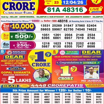 Today's Result is Dear Lucky Weekly Lottery Result 8 PM 27/02/26