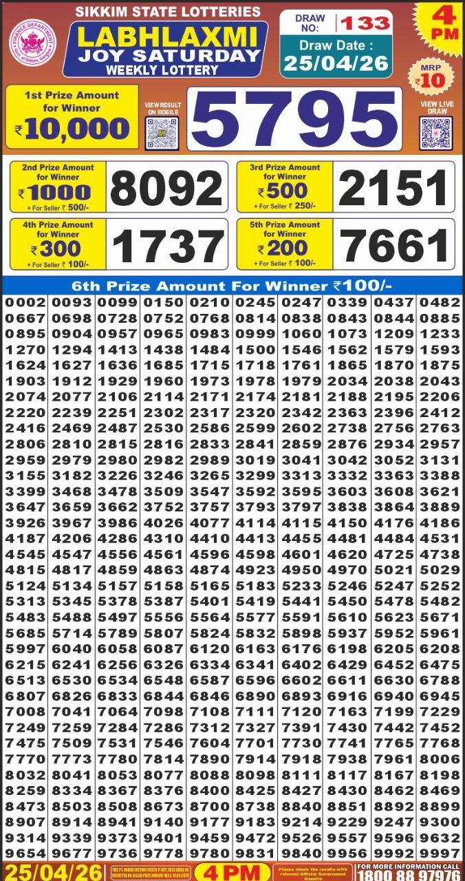 Today's Result is Labh Laxmi Joy Lottery Result 4PM 25/04/26