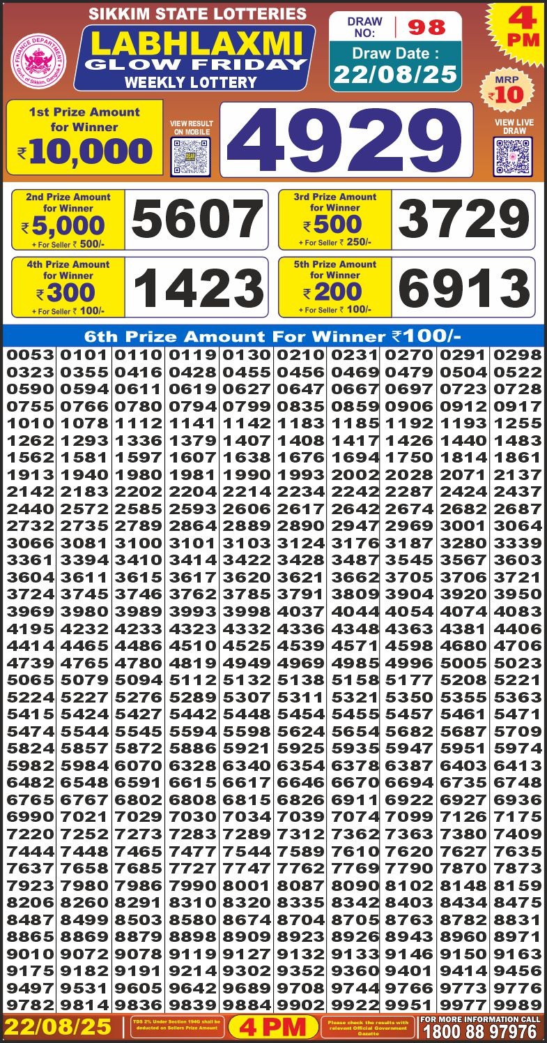 Labh Laxmi Lottery Result Today 22.08.2025 4PM Leave a Comment on Labh Laxmi Lottery Result Today 22.08.2025 4PM