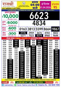 - Rajshree Lottery Result 4 PM Dated 01 April 2026