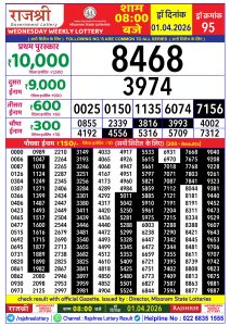 - Rajshree 8pm Weekly Lottery Result Dated 01 April 2026