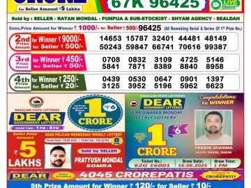Dear Lottery 6 PM Result Declared 22.09.2025