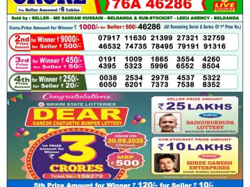 Sikkim State Ganesh Chaturthi Bumper Lottery Result 20.09.2025