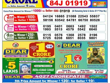 Dear Lottery 8 PM Result Declared 21.09.2025