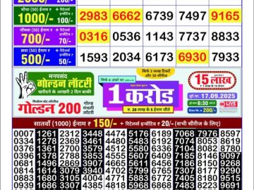 Golden Star Lottery Result Today 9PM 15.09.2025