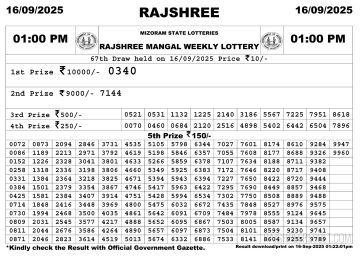 Rajshree Weekly Lottery 08.00PM 16.09.2025