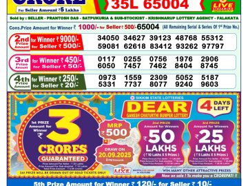 Dear Lottery 6 PM Result Declared 16.09.2025