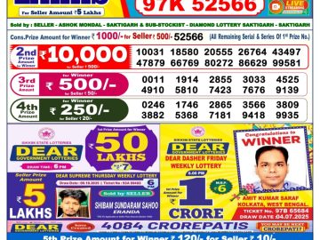 Dear Lottery 6 PM Result Declared 20.10.2025