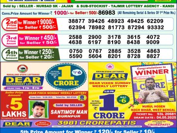 Dear Lottery 1 PM Result Declared 01.09.2025