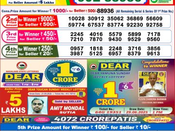 Dear Lottery 1 PM Result Declared 06.10.2025