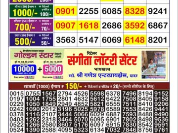 Golden Star Lottery Result Today 9PM 07.10.2025