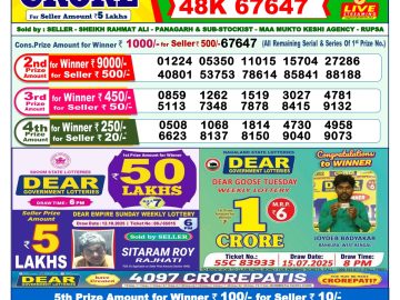 Dear Lottery 1 PM Result Declared 23.10.2025