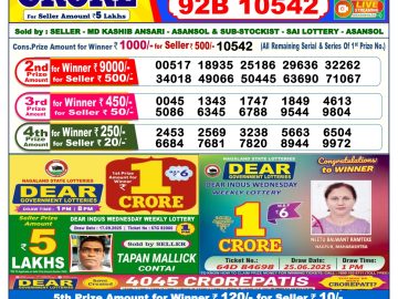 Dear Lottery 6 PM Result Declared 27.09.2025