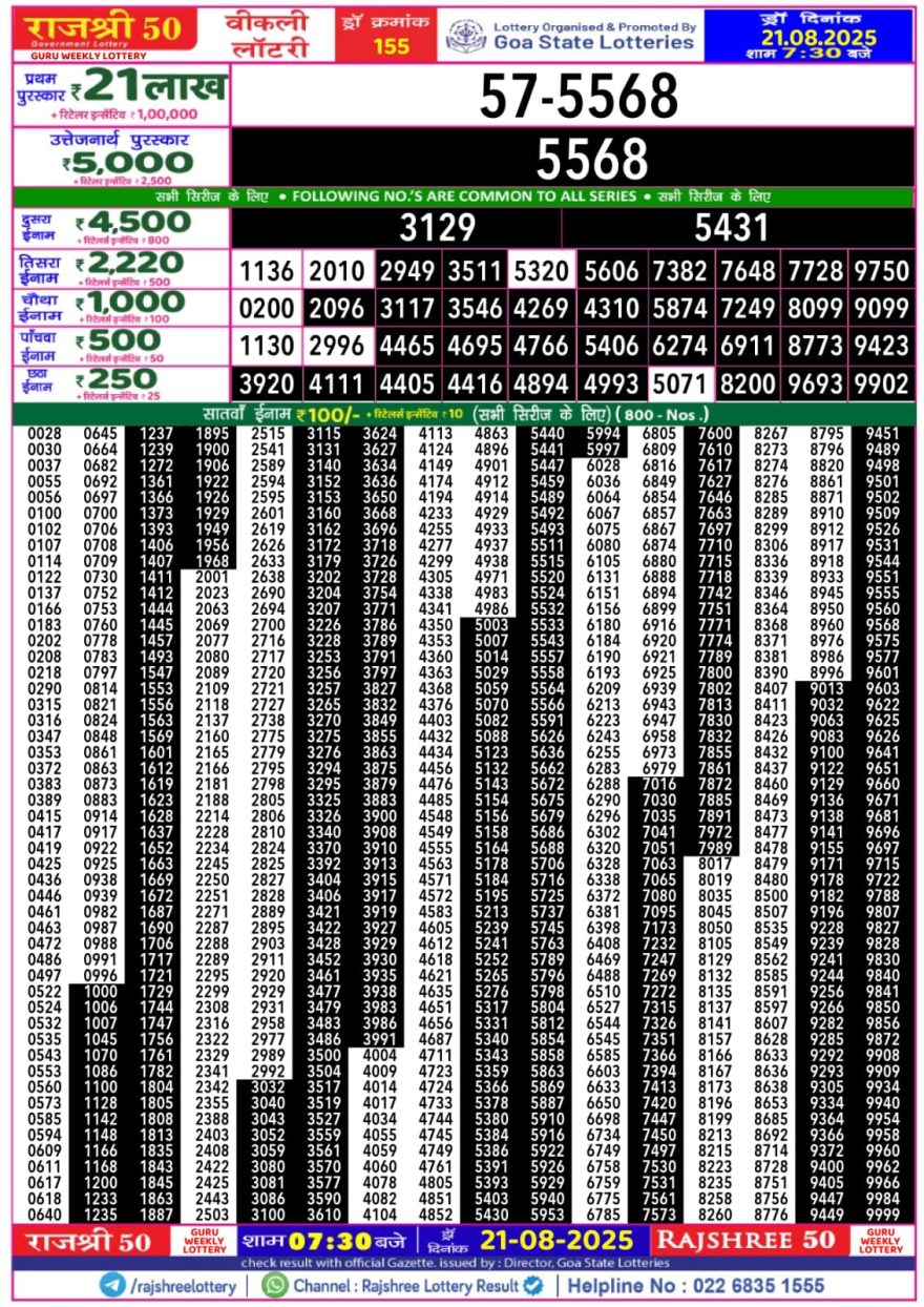 Rajshree 50 Weekly Lottery 07.30PM 21.08.2025 Leave a Comment on Rajshree 50 Weekly Lottery 07.30PM 21.08.2025