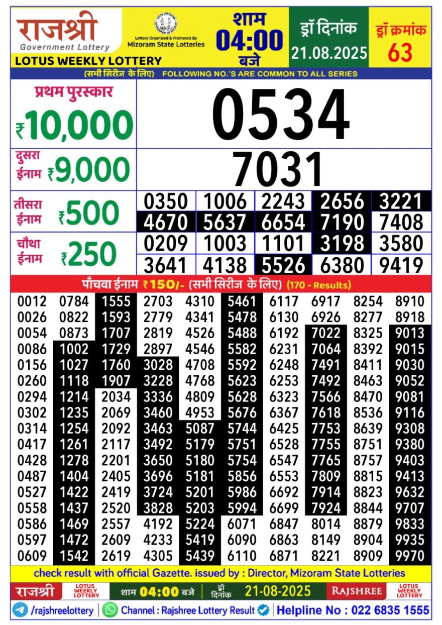 Rajshree Lottery 4 PM Result Declared 21.08.2025 Leave a Comment on Rajshree Lottery 4 PM Result Declared 21.08.2025