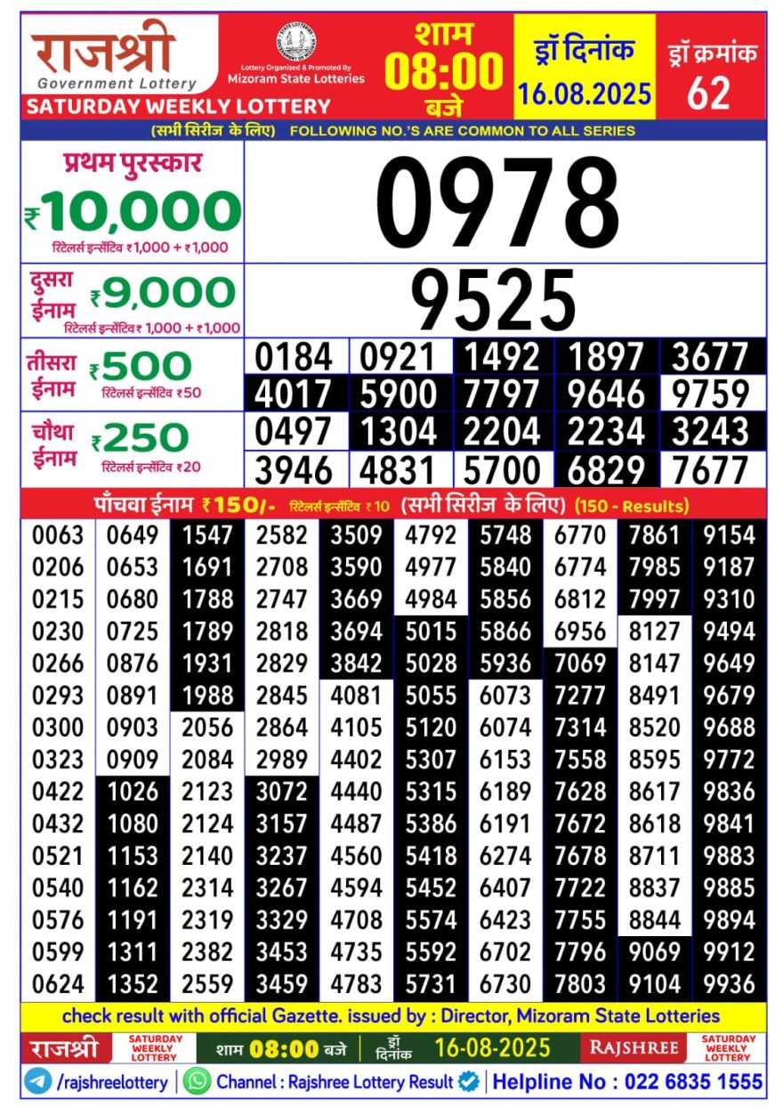 Rajshree Weekly Lottery 08.00PM 16.08.2025 Leave a Comment on Rajshree Weekly Lottery 08.00PM 16.08.2025