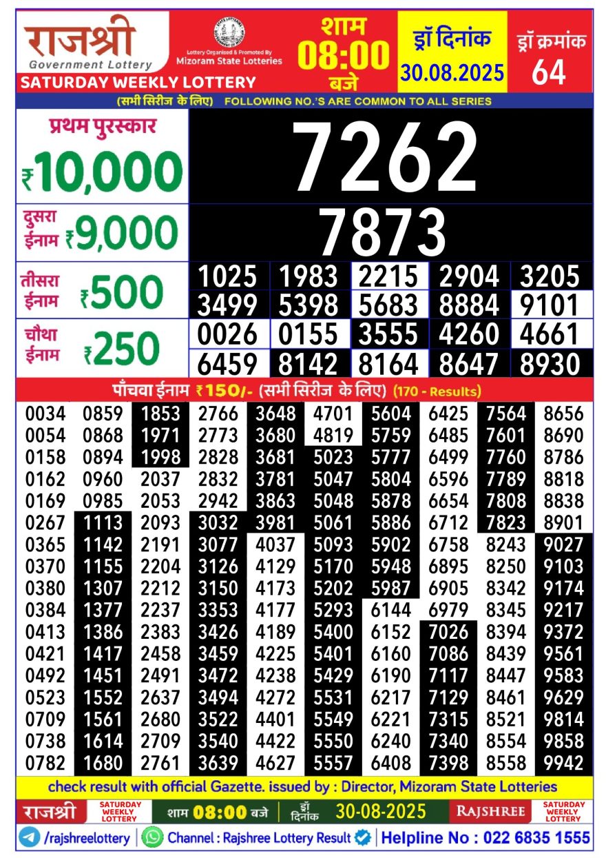 Rajshree Weekly Lottery 08.00PM 30.08.2025 Leave a Comment on Rajshree Weekly Lottery 08.00PM 30.08.2025